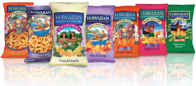 Hawaiian Kettle Style Potato Chips® and Snack Rings are made using a traditional Polynesian recipe and are known not only for superior taste and quality, but also for the artistic, colorful, tropical artwork that appears on all packaging. The unique flavor profiles, crunchy texture and colorful packaging all combine to offer consumers a unique and delicious snacking experience that captures the freshness and authenticity of the islands.